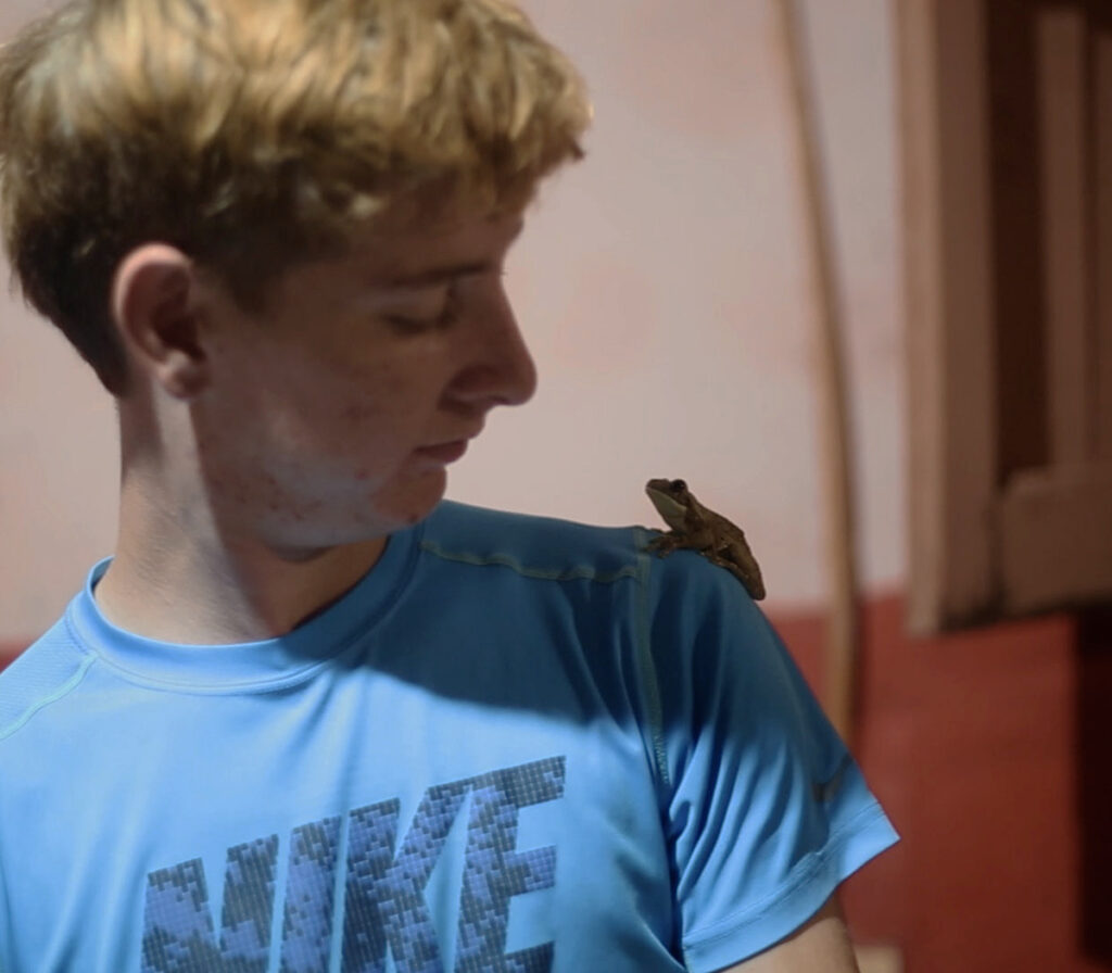 En este punto, El príncipe de Nanawa deja ver su hibridez constitutiva incluso en los aspectos que la definen como documental. No porque necesariamente se juegue con la díada ficción-realidad, sino porque en su acercamiento a la realidad se dejan ver variaciones de modalidad que impiden contentarse con una sola forma de acercamiento. Uno podría pensar que el documental se configura, en principio, en lo que Bill Nichols[5] llama la modalidad observacional, donde se le cede el control al sujeto documentado, aminorando la intervención del realizador. Esto se corresponde directamente con el andamiaje productivo de la primera parte de la película —el otorgamiento de la cámara a Ángel—, como luego también en la pandemia la utilización de su archivo celular. Y esa ofrenda nos brinda gran parte de las alegrías y conmociones más potentes de todo el visionado. Un acercamiento sin mediaciones, verídico, que retrata la realidad tout court. Pero al tratarse de un proceso que involucra el diálogo directo con los realizadores, también se da lo que Nichols llama la modalidad interactiva, que se sostiene en el intercambio con los testimonios, donde ahora los primeros tienen un lugar en el decir fílmico y pueden organizar directamente el sentir sin ocultar sus mediaciones. Participan de los hechos y dotan a las escenas de una idea de parcialidad, de saber localizado y específico. Pero si la película redujera su mirada únicamente a estas aproximaciones, se perdería la experiencia de un proceso que se mueve en paralelo al crecimiento de Ángel y que es igual de sustancial para el film: la amistad que se afianza a lo largo de los años entre Clarisa, el equipo y él. Las instancias en las que ese vínculo se evidencia como motor narrativo no pueden pensarse desde una aparente “objetividad” de lo que se retrata ni como algo que se sostiene por la intervención de los sujetos realizadores sobre la realidad retratada. Hay un encuentro que tiene lugar y que modifica la experiencia no solo de lo expuesto en el film, sino, primordialmente, de quienes intervienen en él.